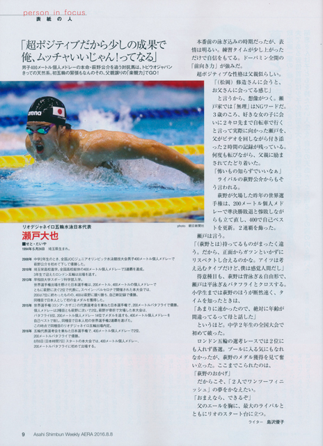 | 【『AERA』での瀬戸大也選手に関する記事】 |